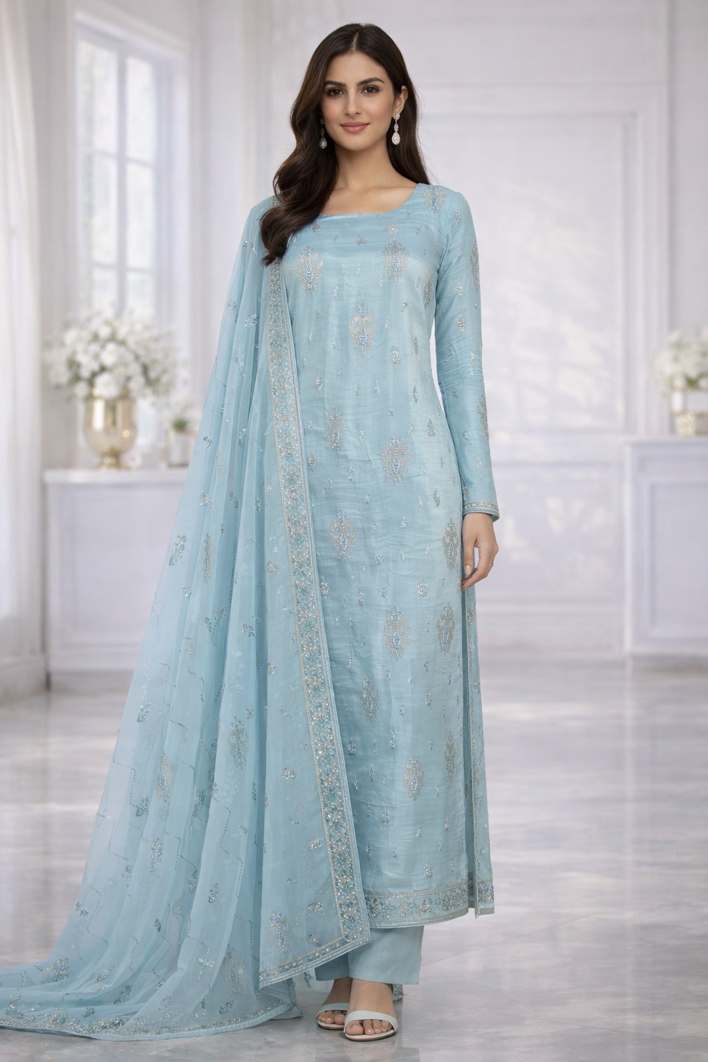 Allover Unstitched 2 piece chiffon with stone work