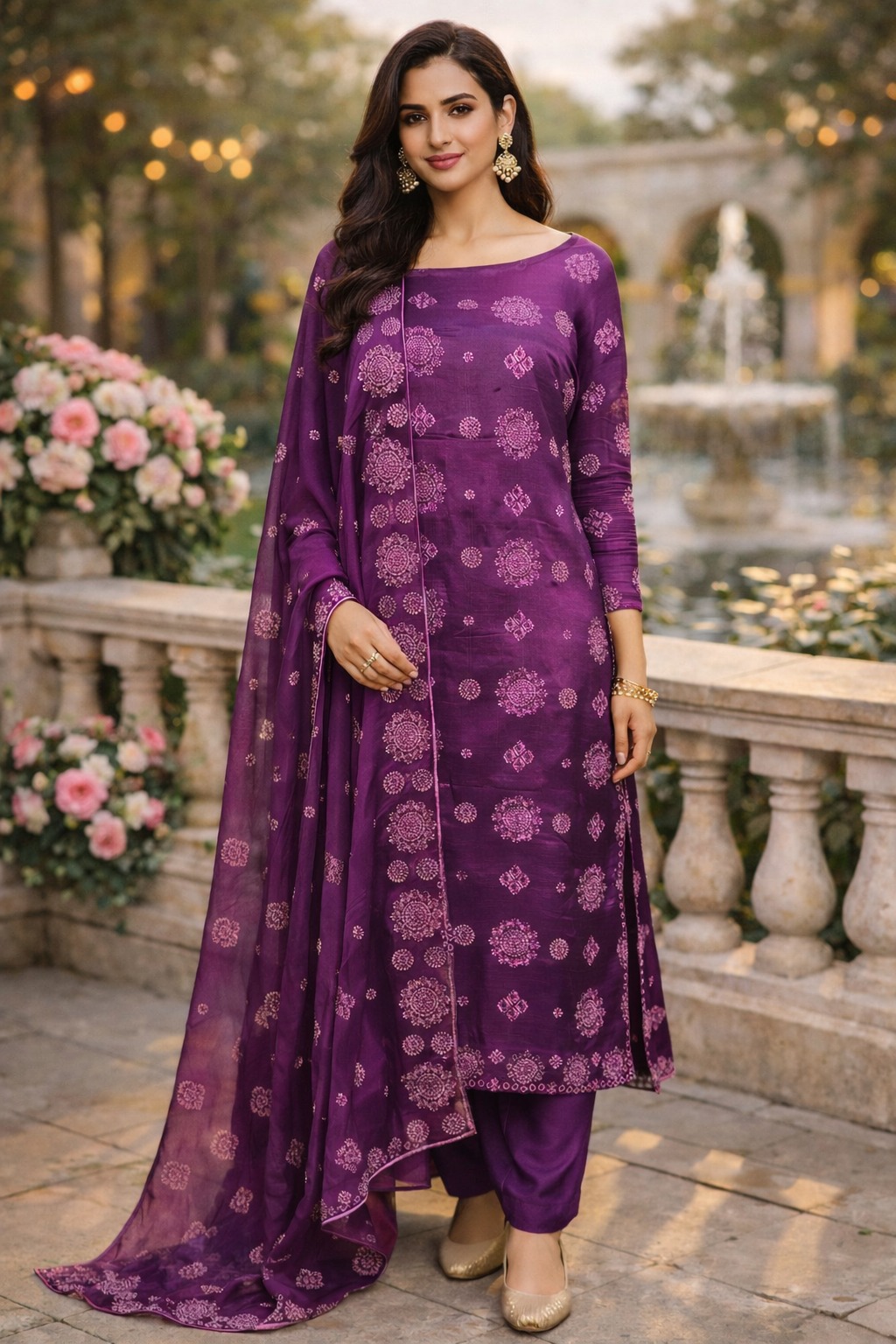 Raw silk 3  piece Unstitched allover with chiffon dupatta