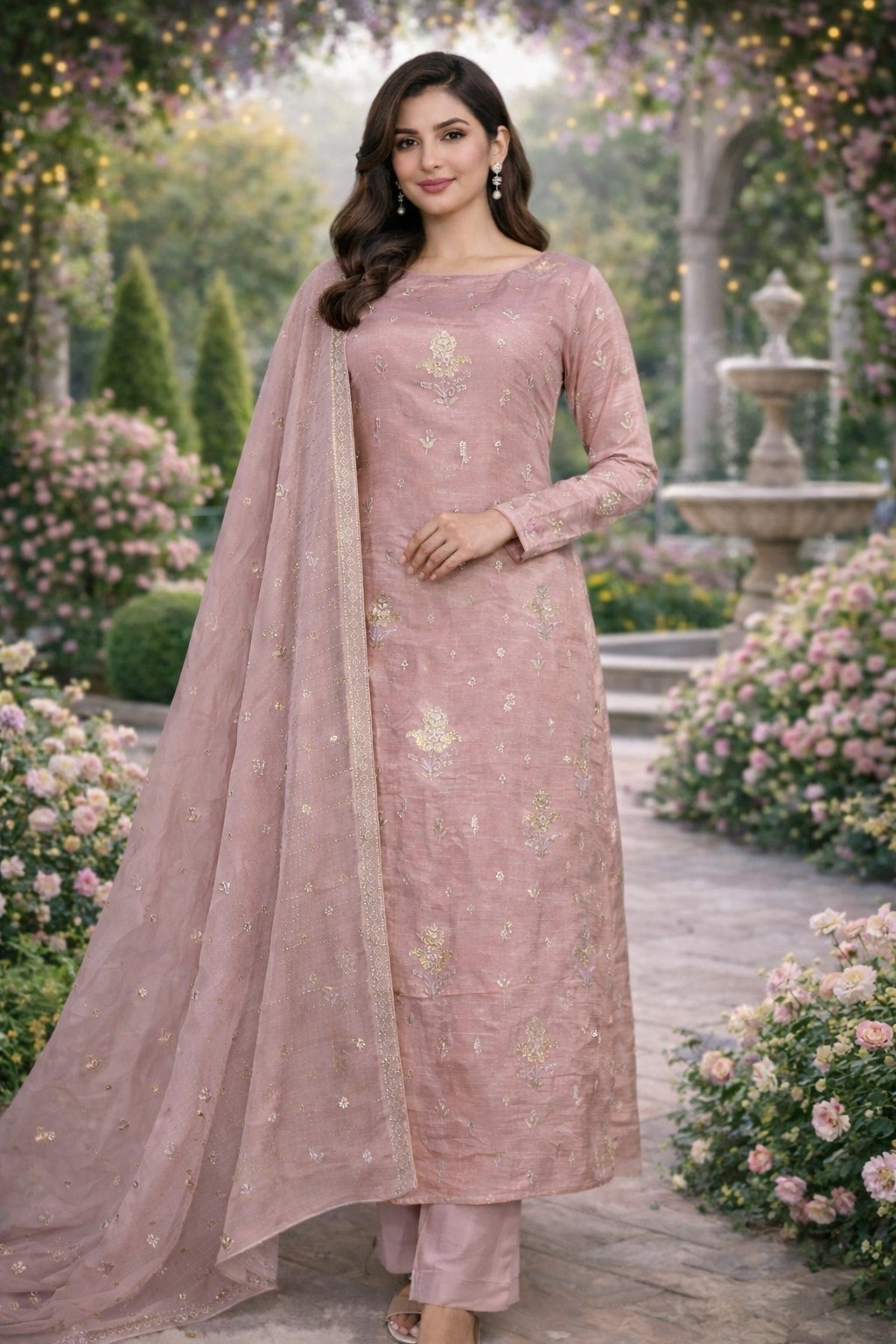 + Free ShippingAllover Unstitched 2 piece chiffon with stone work